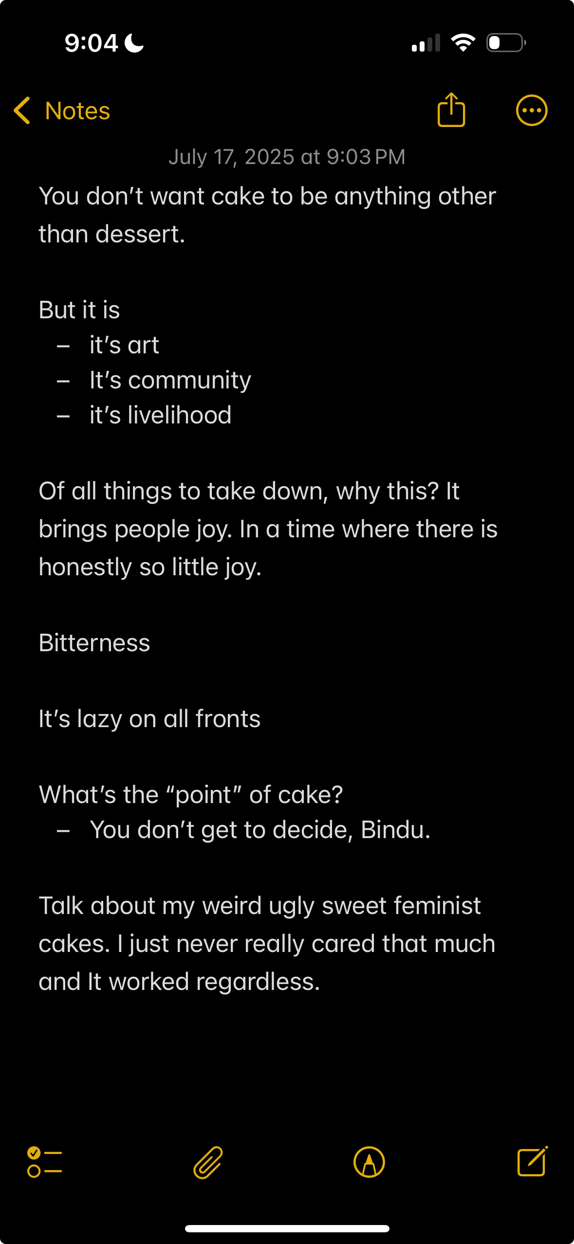 I was going to write an entire response to that shitty article about cake in The Cut, but then I decided that was a waste of my time so I present to you my Notes app pre-writing rambling: